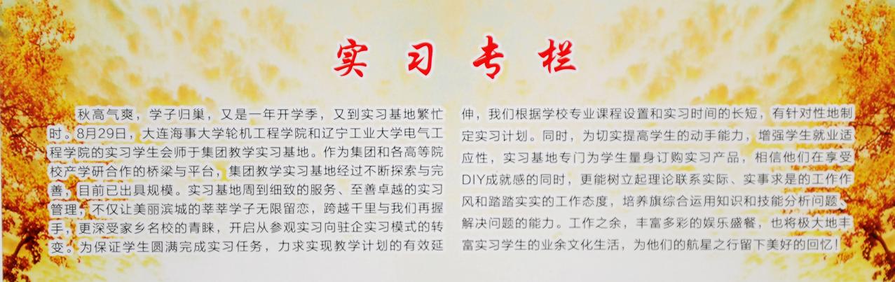 9月30號(hào)上午,我們一行人忘記了昨日的舟車勞頓,匆匆吃過食堂精心準(zhǔn)備的早點(diǎn),迫不及待得想仔細(xì)觀察這個(gè)我們即將實(shí)習(xí)兩個(gè)月的地方--錦州航星集團(tuán)。航星集團(tuán)坐落于遼西中心美麗的濱海城市錦州,是錦州市裝備制造業(yè)的龍頭企業(yè),不僅著眼于海、井、陸、空、天五大市場(chǎng)立體化發(fā)展,而且瞄準(zhǔn)全省船舶配套業(yè)領(lǐng)軍企業(yè)的目標(biāo)奮力前行。能在這樣一個(gè)集團(tuán)實(shí)習(xí)讓我感到非常榮幸,我們一定會(huì)自覺遵守法律、法規(guī)及實(shí)習(xí)基地的各項(xiàng)管理規(guī)定,做遵紀(jì)守法的實(shí)習(xí)生,在實(shí)習(xí)中積極主動(dòng),態(tài)度認(rèn)真,服從實(shí)習(xí)指導(dǎo)老師及實(shí)習(xí)部門的管理。相信我們未來兩個(gè)月實(shí)習(xí)生活會(huì)更加精彩,衷心祝愿航星集團(tuán)鵬程萬里、蒸蒸日上。